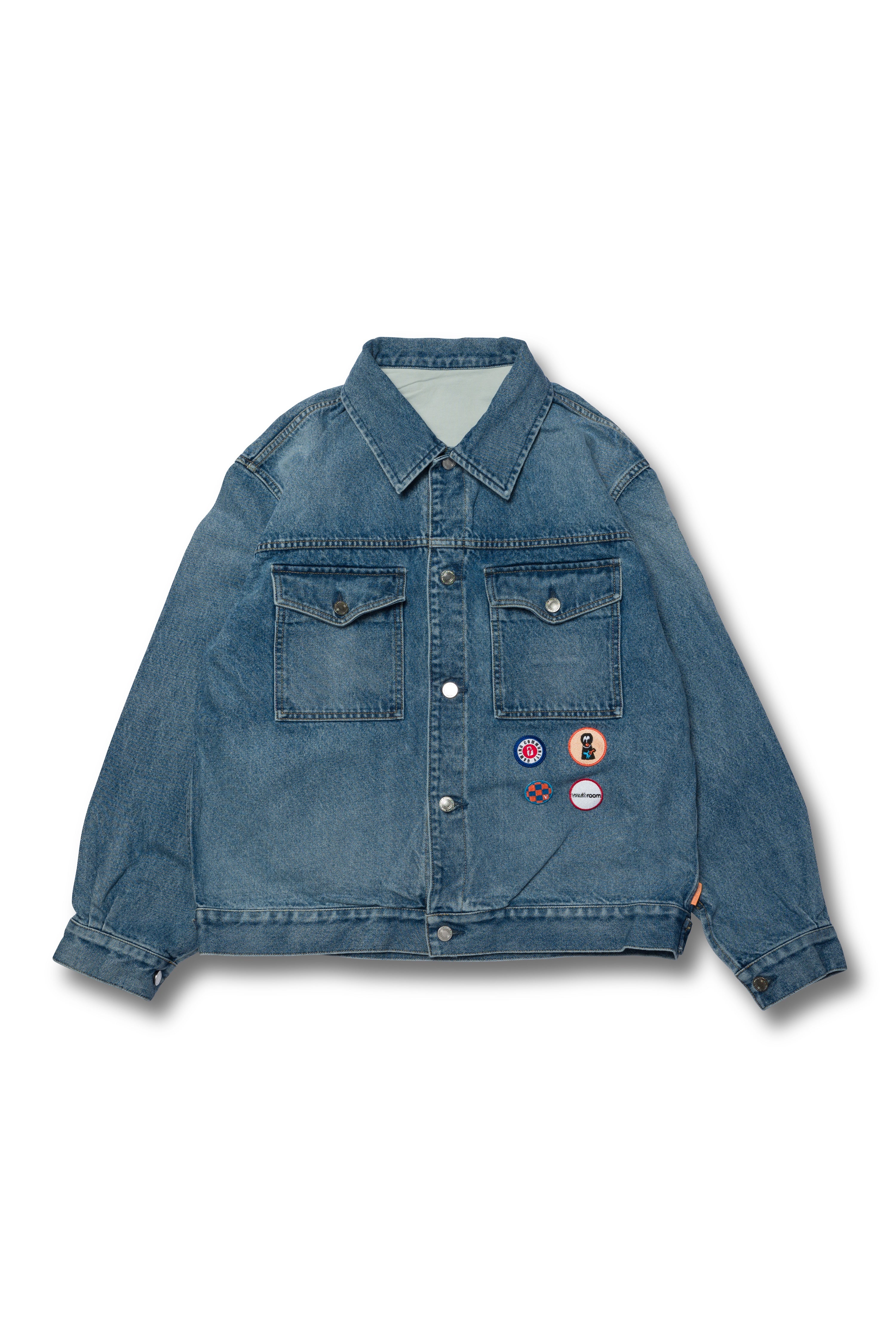 EMB PATCH DENIM JACKET / WASH BLUE